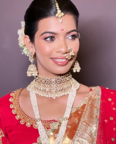 “At Glam N Glow Studio, we specialize in transforming your look with precision and passion. From professional bridal and party makeup to editorial and occasion-based looks, every service is customized to your skin tone, face shape, and personality. Using premium products and the latest techniques, we ensure your makeup not only looks stunning but feels comfortable and long-lasting. Whether it’s a timeless bridal glow, a chic cocktail glam, or a natural dewy finish — we make every look uniquely yours."