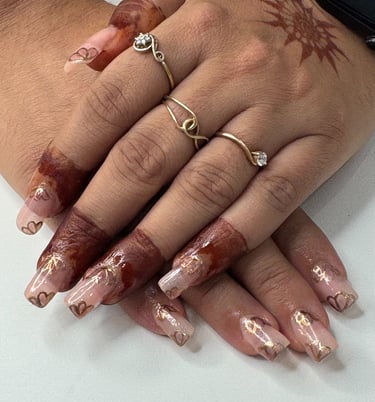 “Our nail artistry is all about expression, elegance, and trends. We offer a complete range of services including gel, acrylic, and polygel extensions, gel polish, refills, and removals — all executed with precision and care. From minimalist nail art to bold 3D designs, our artists bring creativity to your fingertips. Each session focuses on quality, hygiene, and personalized style, giving you nails that are strong, beautiful, and fashion-forward.”